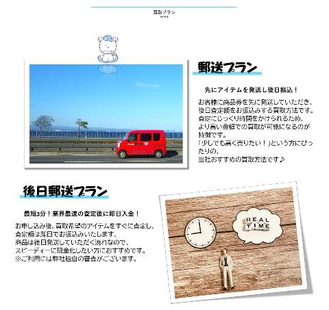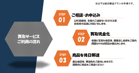 | 買取方式 | 先払い買取・後日郵送プラン |