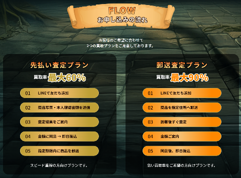 高価買取を希望の場合は郵送査定プラン(商品先送り)を利用すると買取代金は後払いになりますが、高額査定が期待できます。